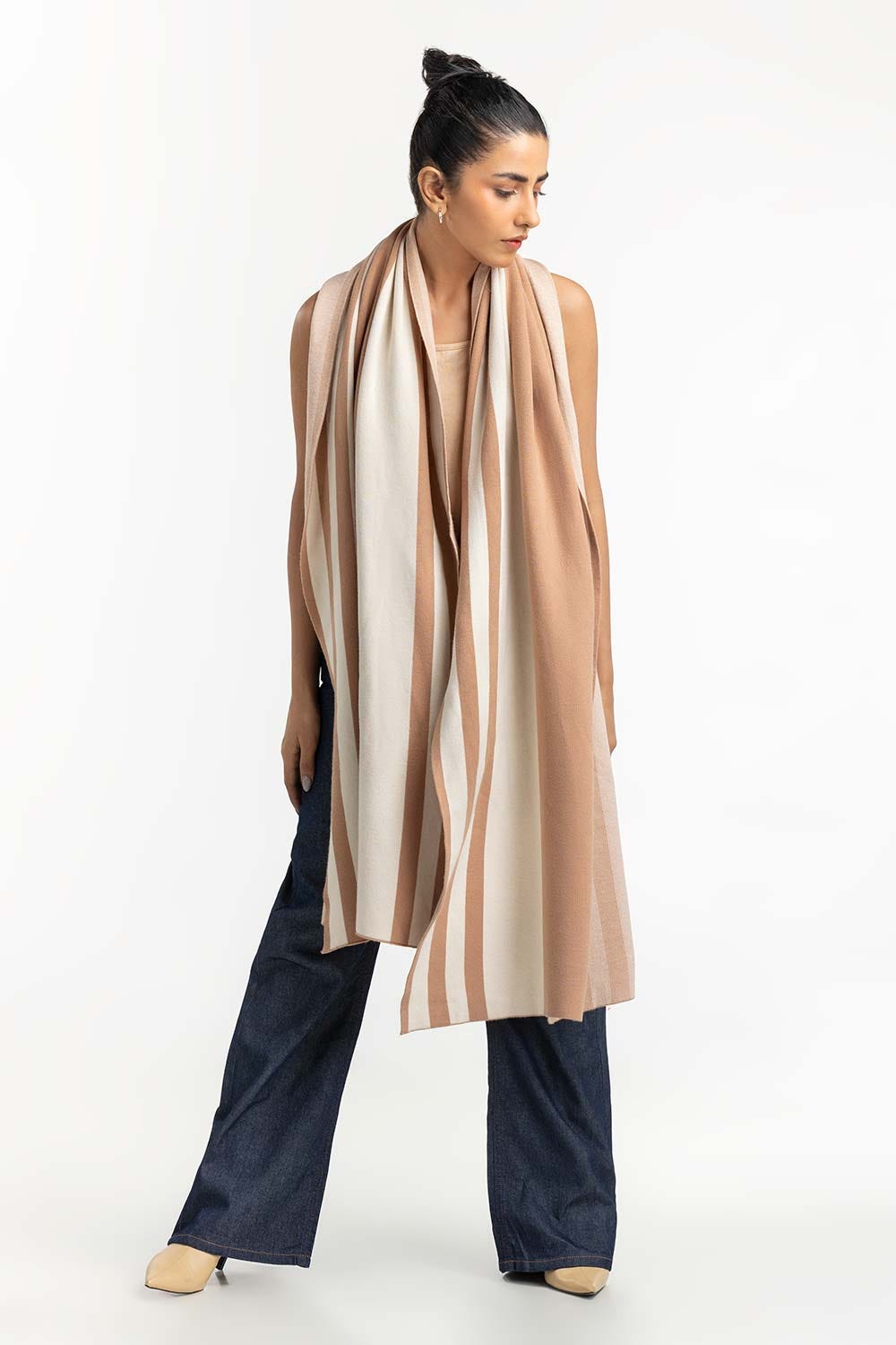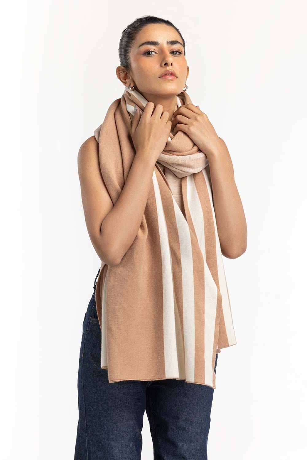 White Striped Shawl 224-211-093