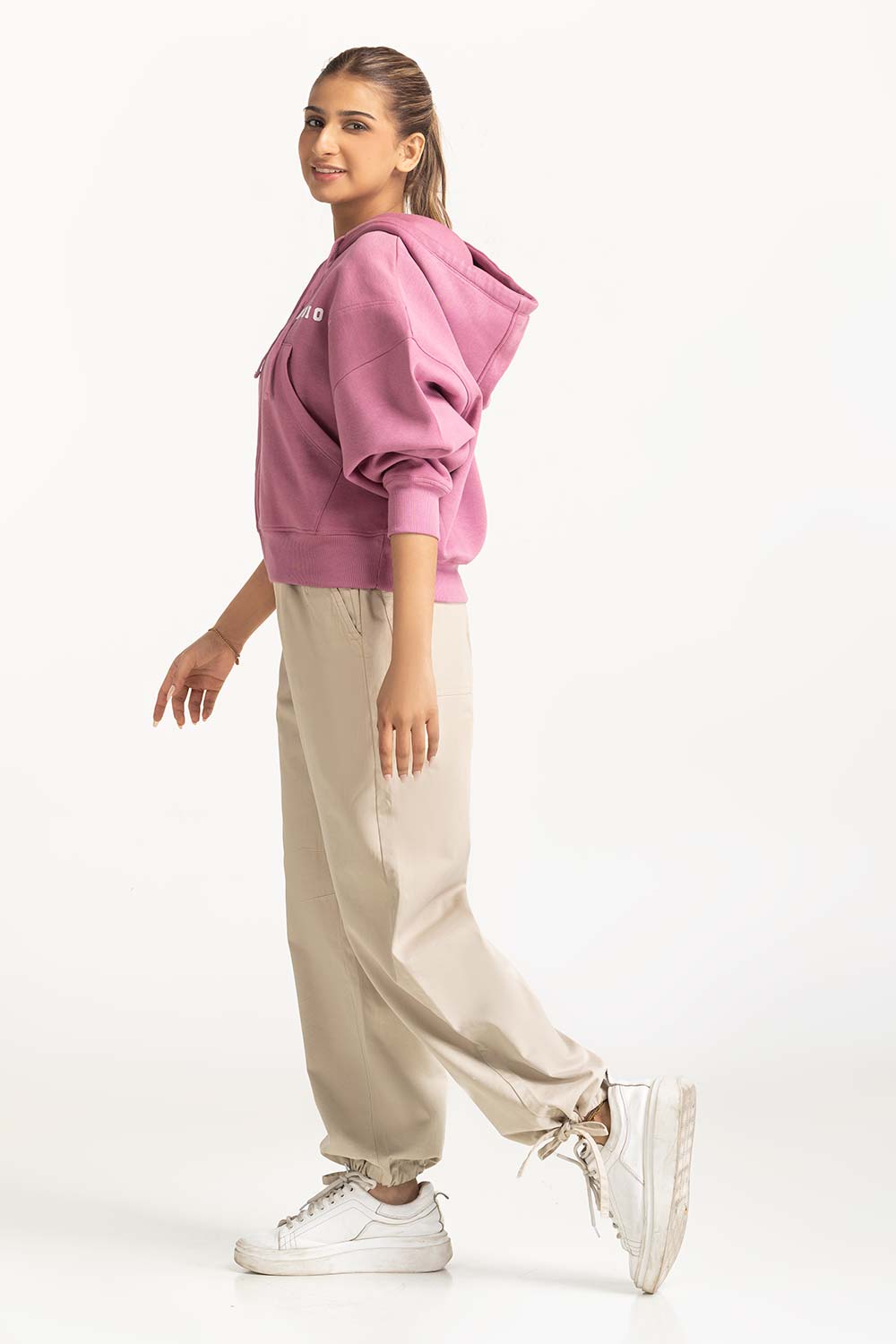 Pink Oversized Zipper Hoodie with Drop Shoulder